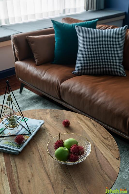 在家具的選擇上,設(shè)計(jì)師建議采用深色,因?yàn)榧揖叽蟛糠诸伾鹊匕鍦\的話,在視覺(jué)上很容易形成分離感。黃棕色沙發(fā)讓空間的色彩更加飽滿,變?yōu)閺?fù)古與時(shí)尚的結(jié)合。選擇細(xì)腿的沙發(fā)茶幾,增加線條感看上去更加舒服,避免顯得笨重。