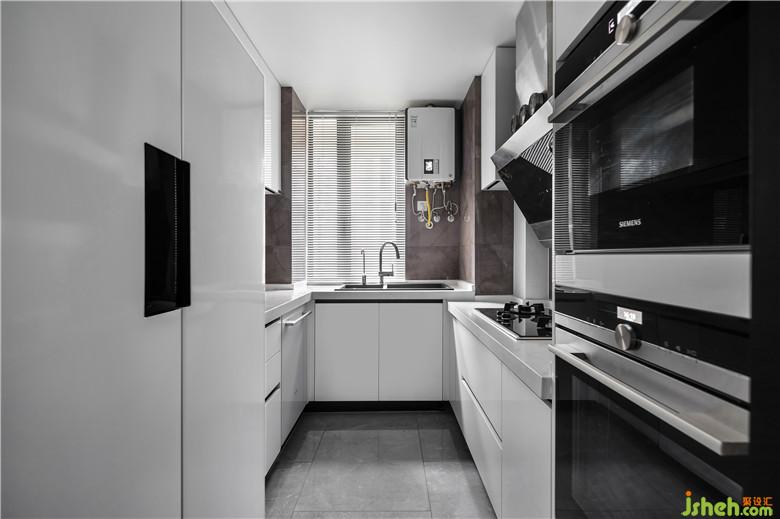 U字型廚房設(shè)計,能充分利用空間,擴(kuò)大操作面積。