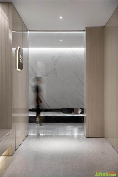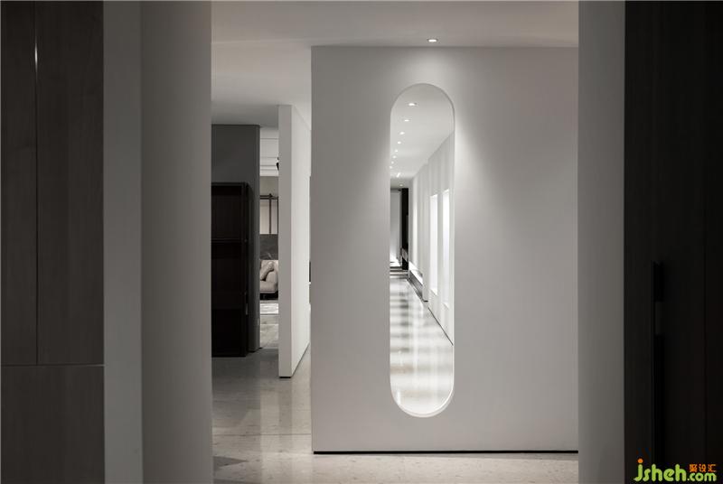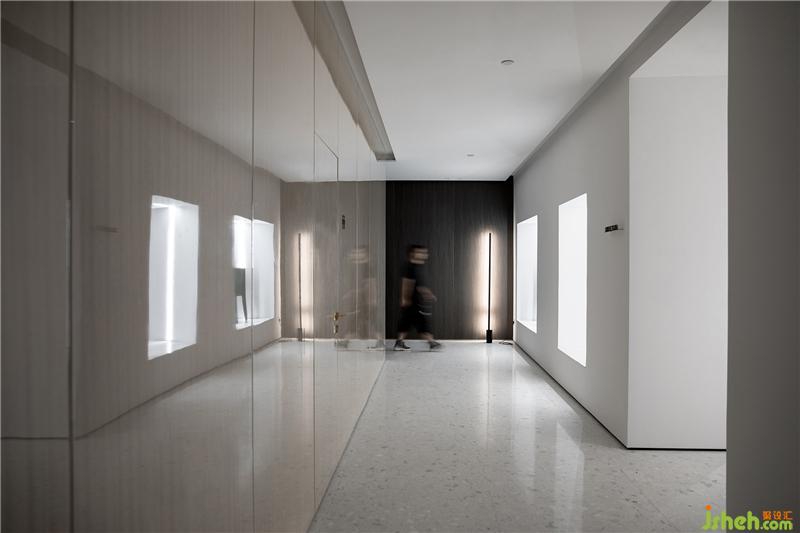 空間定位確定后,我們希望每個(gè)區(qū)域有所區(qū)別好讓人進(jìn)入每一空間都有不一樣的親身體驗(yàn)。展廳入口的第一個(gè)問(wèn)題就是光源太少,我們?cè)陧敳繅γ姘惭b了一排燈帶,來(lái)彌補(bǔ)室內(nèi)光線的不足。側(cè)廊由于面積窄小由于中央展廳毗鄰,通過(guò)兩個(gè)不規(guī)則的梯形窗口減少壓抑感,也可供作為展示的櫥窗,便于展示最新主題家具,同時(shí)也將兩個(gè)空間的景貫通起來(lái)。企業(yè)展廳設(shè)計(jì)