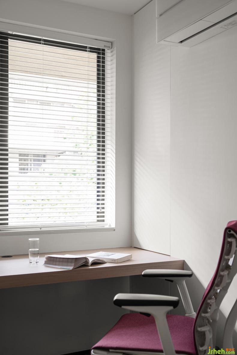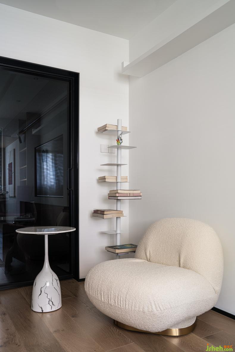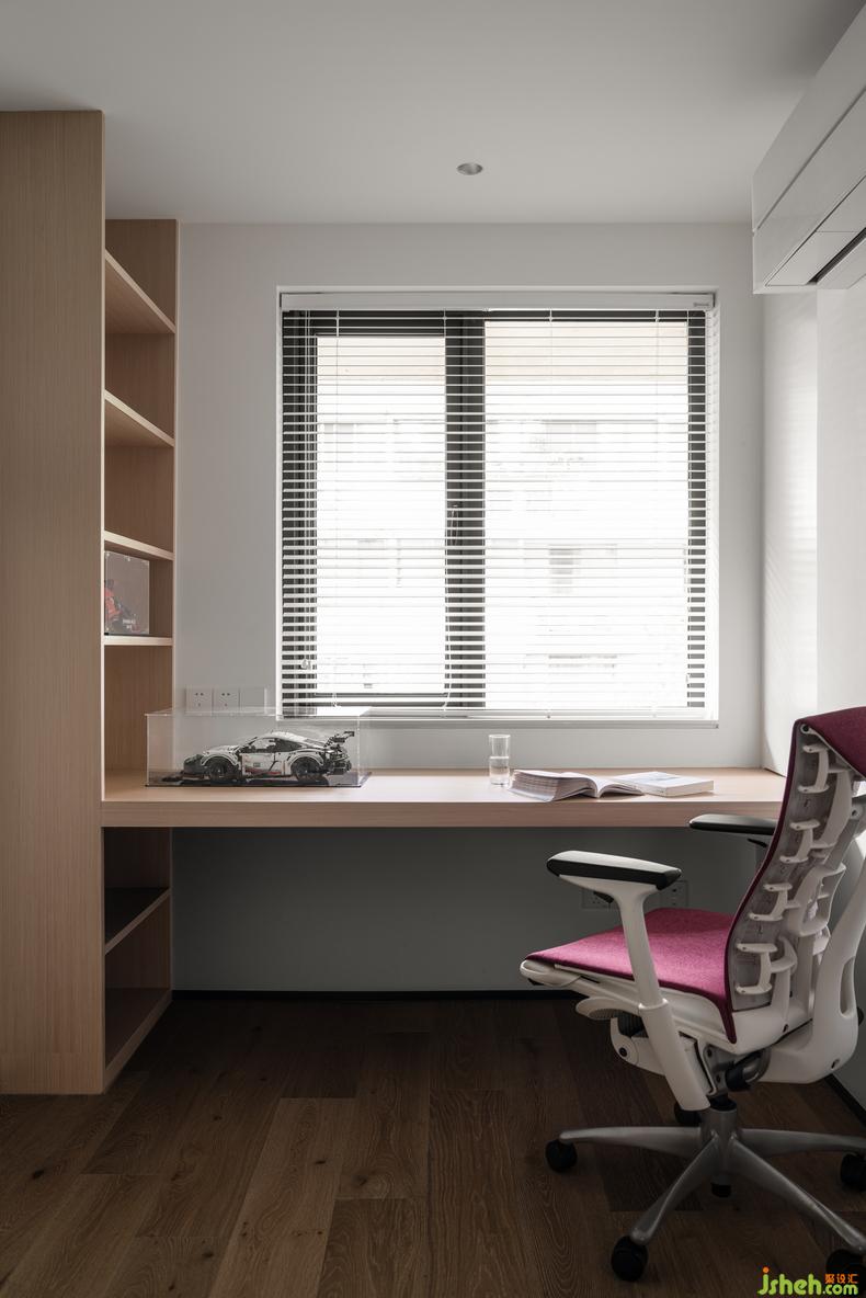 書房原本只有一扇窗戶,采光受到了局限,設(shè)計(jì)師將墻體改用成玻璃移門,裝修設(shè)計(jì)將客廳的光線延伸至?xí)?,這樣書房和客廳不僅光線互通,還有了互動(dòng),動(dòng)線和靜線相互結(jié)合。