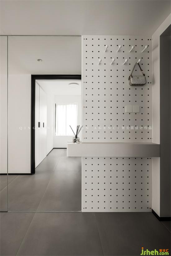 進門左手邊的室內(nèi)設計師超大鞋帽間+收納柜,讓你的鞋子可以各得其所,你再也不用為看中的新鞋子找不到歸屬地而發(fā)愁,還能滿足日常的收納。