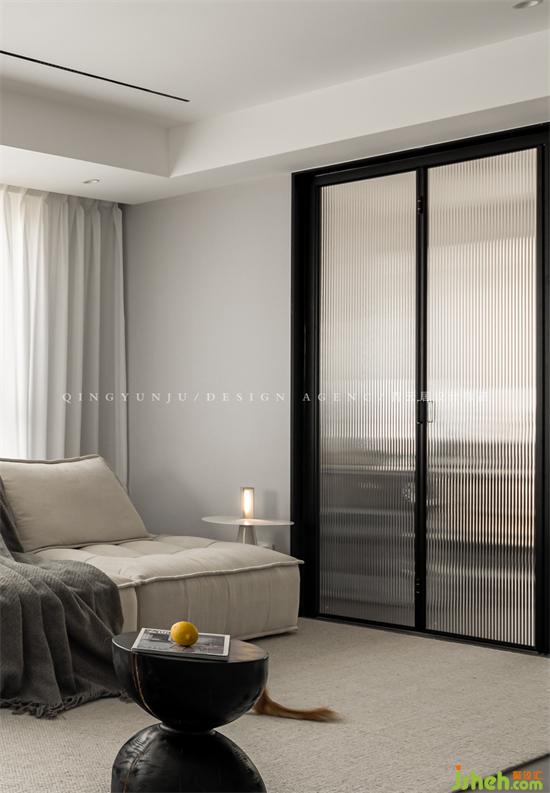 客廳和書房之間,增加玻璃折疊門,同時保證了書房的私密性。