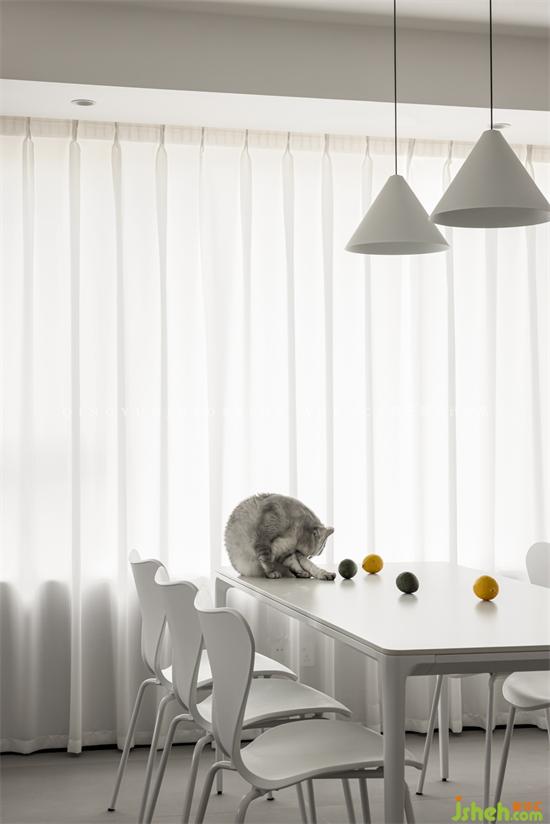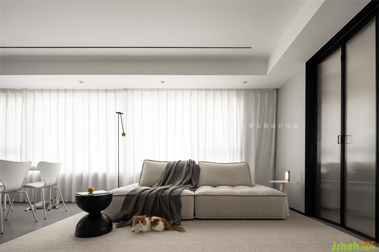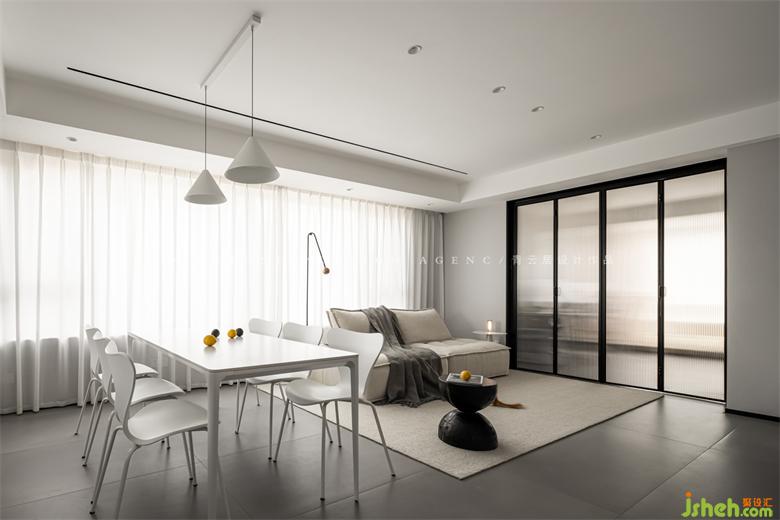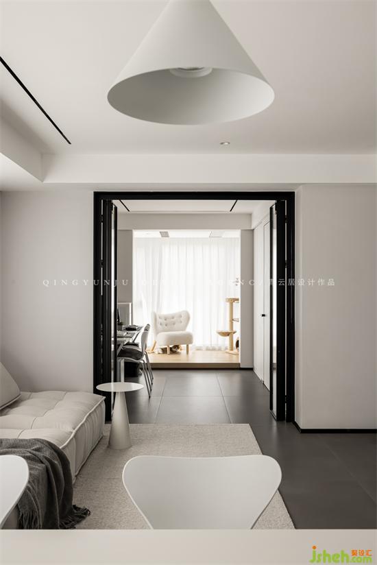 The original rooms are relatively closed and isolated from each other, like small boxes, with no interaction; the designer opened up the study and connected the balcony and living room to each other. The north and south are transparent and the light is very good.