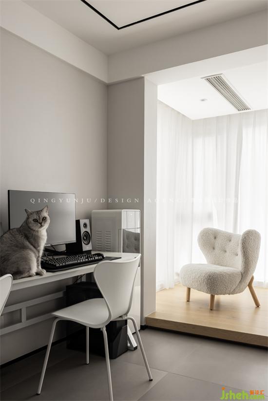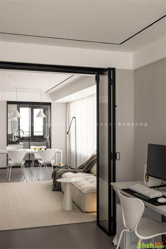When the sliding door of the entertainment area is opened, the dining room and the leisure area are integrated, and two people and three cats can play to their heart's content; when the sliding door is closed, it becomes a private master bedroom large suite.