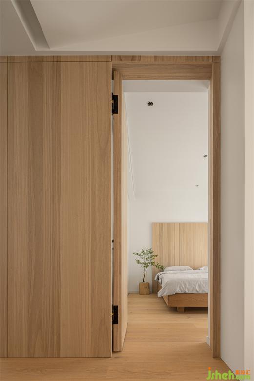 The bedroom doors are unified with original wood color doors, hidden wooden doors, visually more uniform。