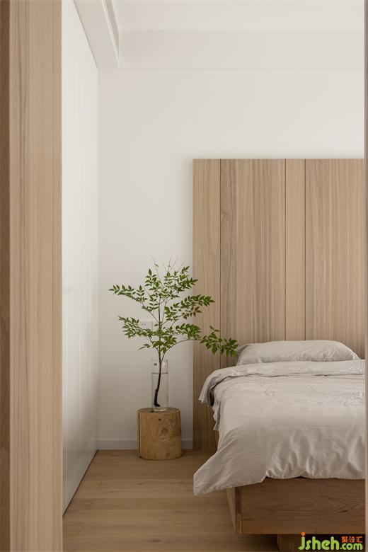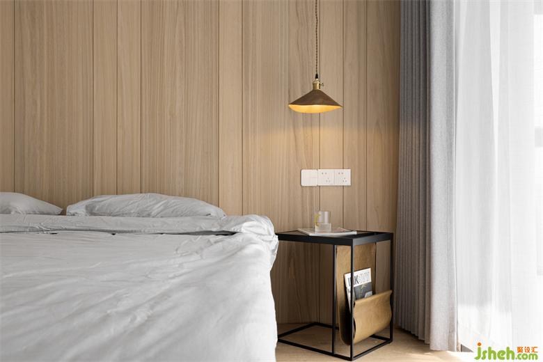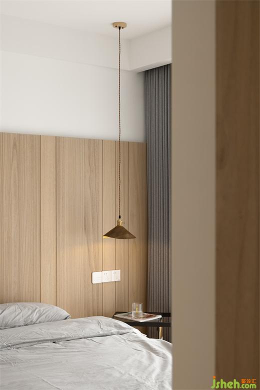 床頭背景墻與地板色彩相呼應(yīng),杭州世貿(mào)之西湖家裝設(shè)計(jì)搭配窗簾的淺灰色和紗簾,靈動(dòng)富有生氣,原木風(fēng)設(shè)計(jì)總是能給人一種柔軟舒適、優(yōu)雅溫馨的感覺(jué),這也正是對(duì)家的向往。