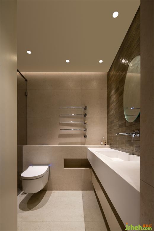 衛(wèi)生間采用大面磚,搭配簡潔的衛(wèi)浴設(shè)備,以及白色、米色等中性色調(diào),使整個(gè)空間更加干凈利落。