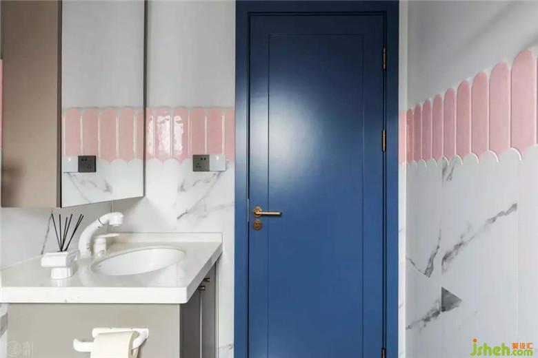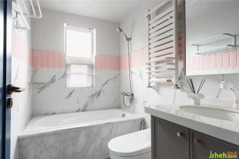 主衛(wèi)用粉色在灰色大理石紋上調(diào)動出充滿靈動意味的情緒。