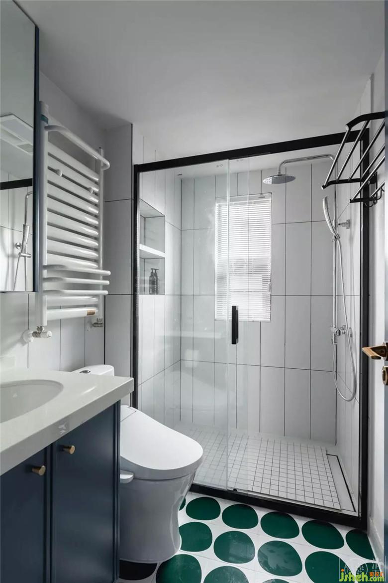 次衛(wèi)的綠色大波點(diǎn)地面是居住者個性化的表達(dá),就像講給家人的俏皮話,讓生活變得可愛起來。