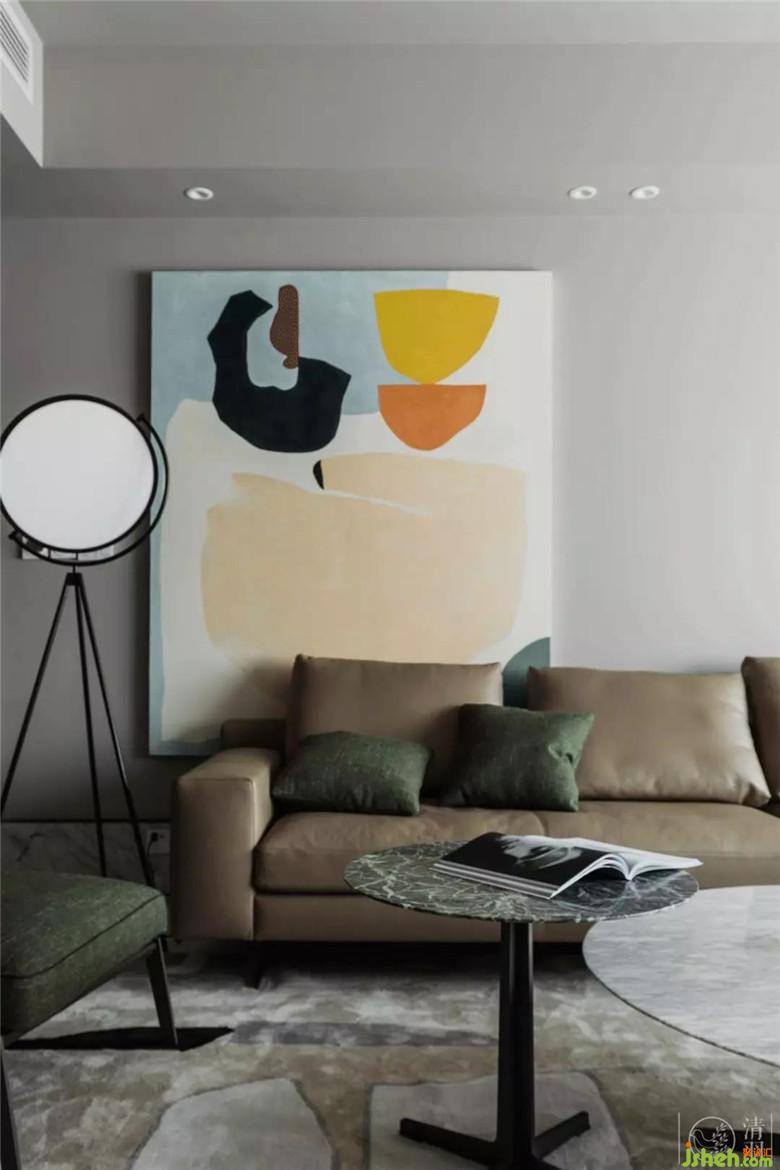 客廳的布局自由而放松,硬裝是追求質(zhì)感和極簡(jiǎn)的狀態(tài),家具是CAMERICH 銳馳的全套家具,深草綠的沙發(fā)椅、深卡其的皮質(zhì)沙發(fā)、淺灰的墻面、珞黃的透明花瓶,配合大理石的自然紋理、木材的天然質(zhì)感,整個(gè)客廳都散發(fā)著溫暖且極具包容感的味道。