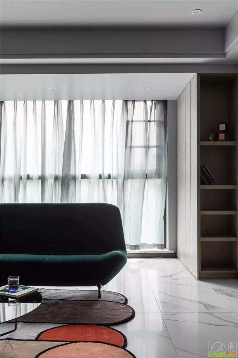 客廳和餐廳相連的設(shè)計,延長了空間的縱深感,讓這個家顯得更為寬敞。而區(qū)別于普通客廳的常規(guī)布局,我們用圍合式的設(shè)計來做空間功能的區(qū)隔感。造型簡單的月球茶幾、獨特的掛鐘、皮質(zhì)單椅,這些不算多的家具置于其中,就構(gòu)成了家里幾個人傾心相談、相聚的小天地。輕盈潔白的窗簾透著外面溫暖的日光,也隔了夏的炎、秋的涼。