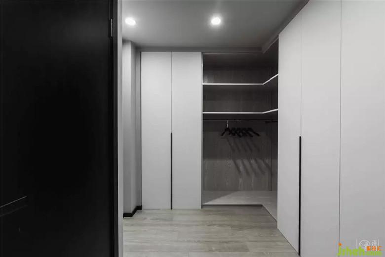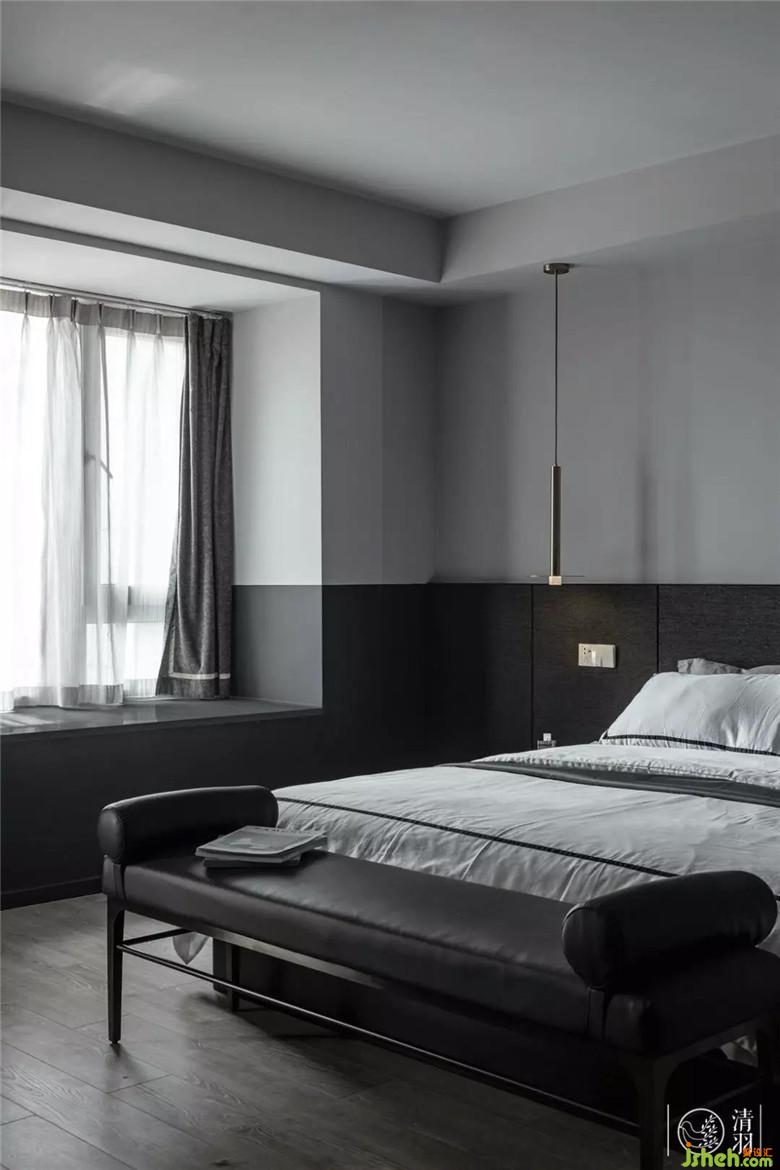 墻面選用了更經(jīng)濟(jì)實(shí)惠的乳膠漆,上灰下黑的搭配,延伸了床頭軟包的視覺(jué)感,也呼應(yīng)了主題色調(diào)。