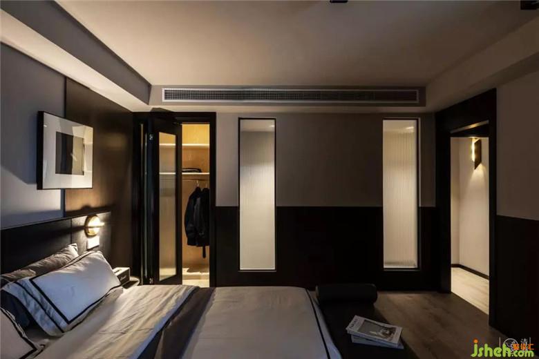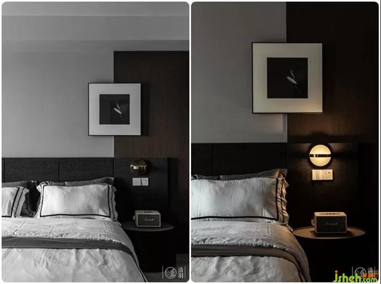 位于二樓的另一間主臥采光不如一樓好,我們?cè)诖差^的軟包上做了一點(diǎn)小手腳,用了美線燈和床頭的小壁燈來(lái)提升空間氛圍。