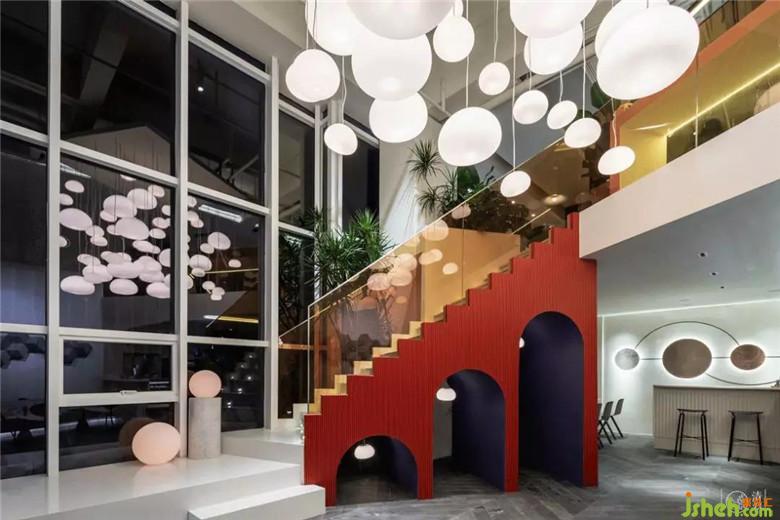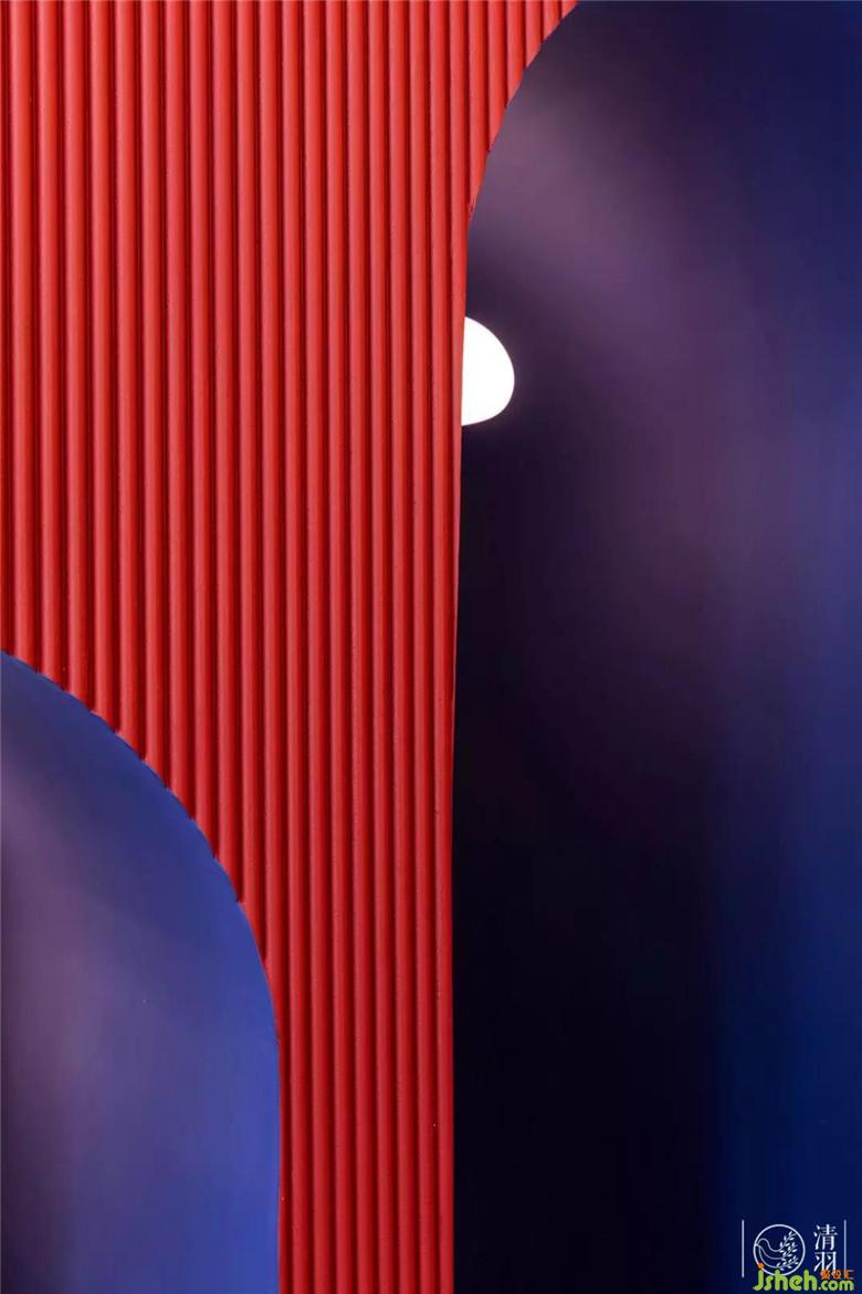 如果說紅藍(lán)可以代表男女,那么懸浮在上空的水滴燈則象征著不同的靈魂。為了讓多元素及多色彩的融入的空間有質(zhì)感,業(yè)主不僅采購了一組(六十盞)價(jià)格不菲的Muuto燈具,安裝時(shí)我們甚至一同與工人師傅通宵達(dá)旦的調(diào)試每一根燈線的曲度、長度,畢竟每一個(gè)“靈魂”都值得被認(rèn)真對(duì)待,不是么?