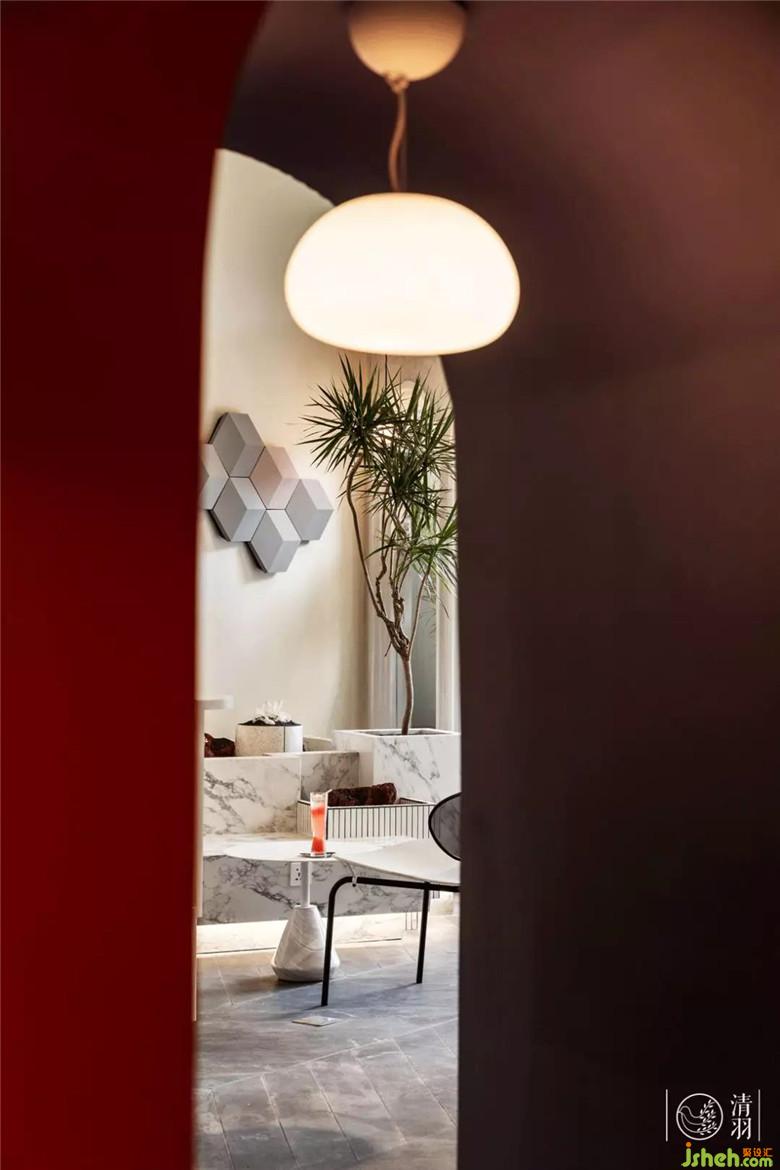 除了進(jìn)門處的“三重門”設(shè)置,我們在室內(nèi)也多次加入了“三重”“拱門”的元素。