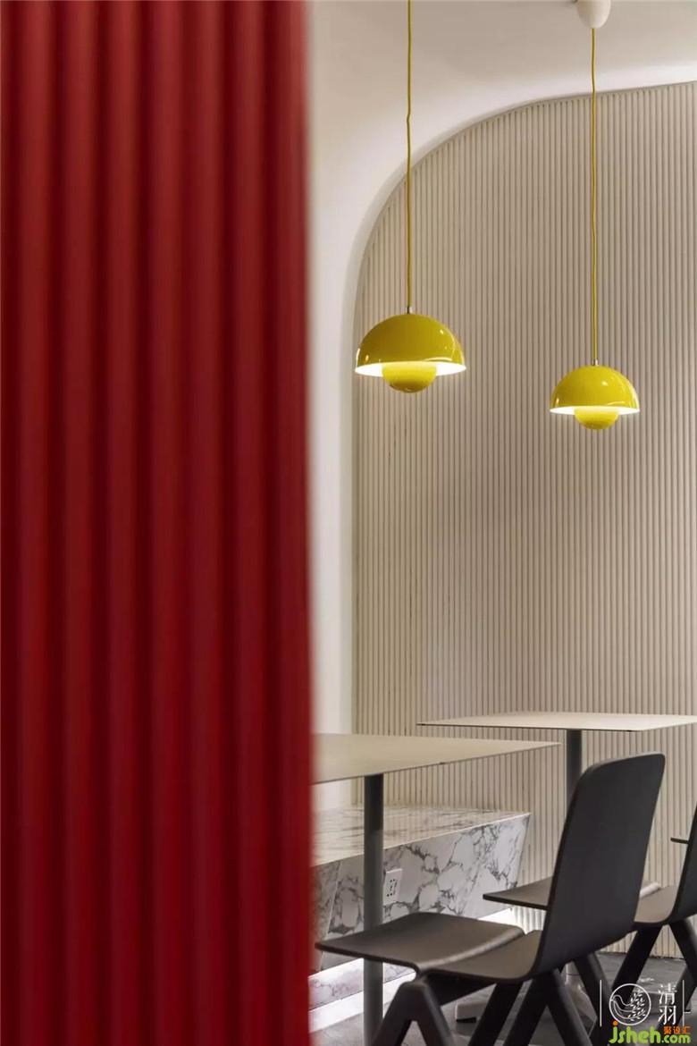 從樓梯的扶手部分開始直至樓上的包間區(qū)域,我們采用了質(zhì)感上乘的夾膠彩色玻璃。特別之處在于它的色彩不是貼膜而來,也因為顏色特別,為此我們也“折磨”工廠數(shù)次打樣,力求它與預(yù)期高度統(tǒng)一。