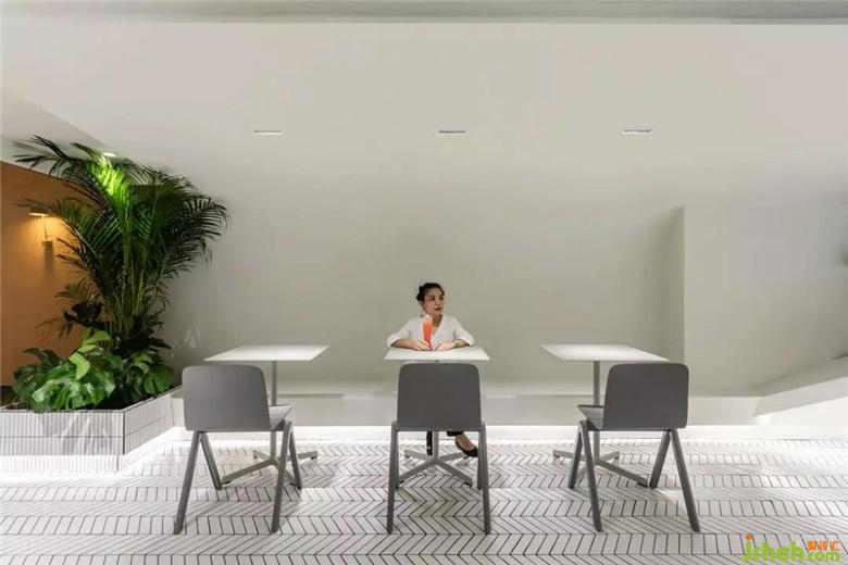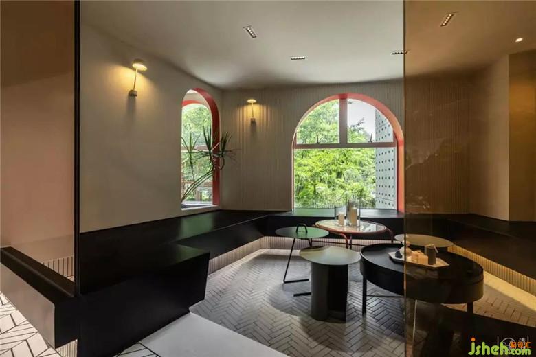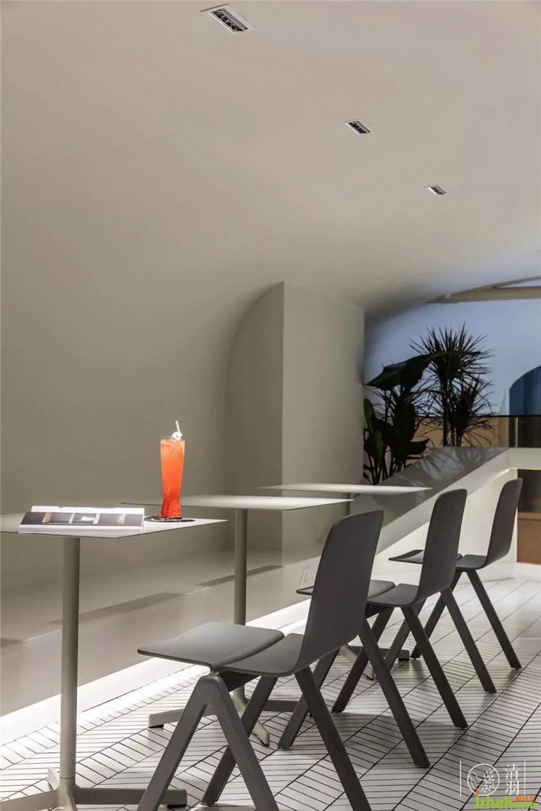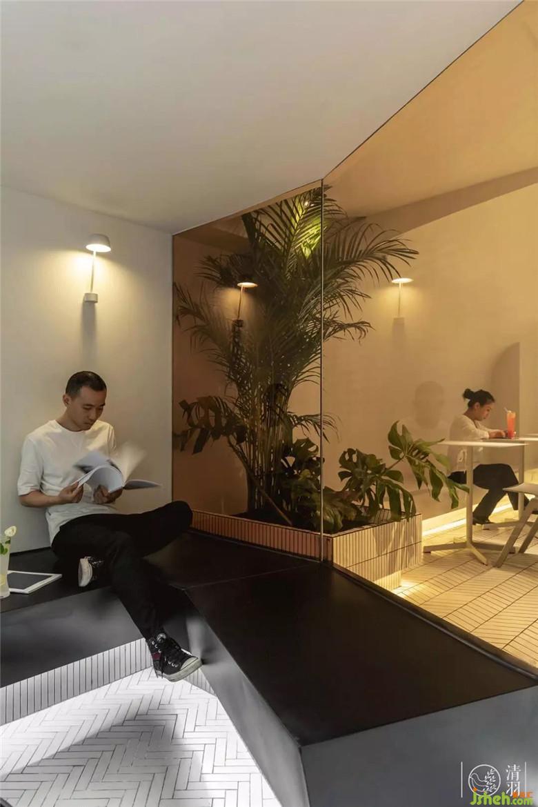 這個(gè)區(qū)域旁邊我們用橙色的玻璃做了一個(gè)開放式的包間,保留了整體空間的呼吸感,也恰到好處的營造了區(qū)隔感。