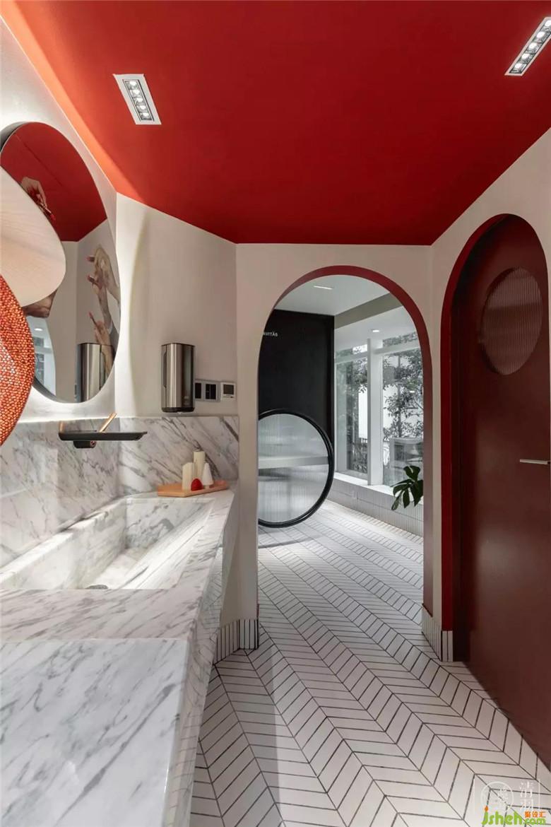 雖說(shuō)盥洗間是整個(gè)餐廳里一個(gè)相對(duì)獨(dú)立且小的空間,但“小”絕對(duì)不會(huì)影響它的含金量!