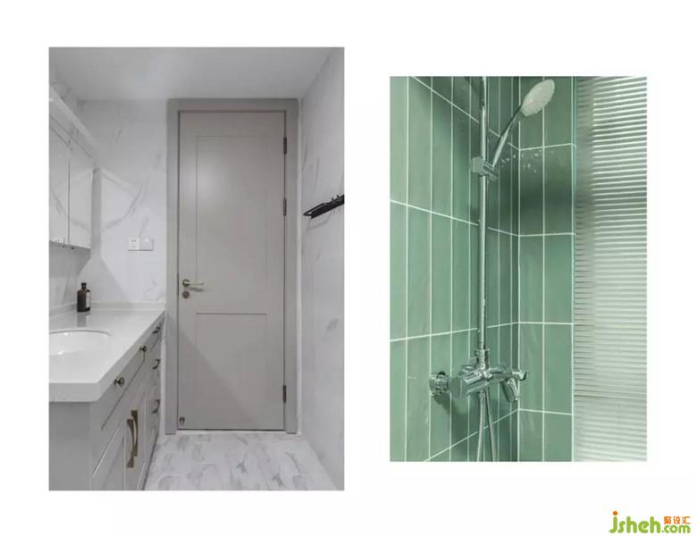 干凈的魚(yú)肚白配上灰綠色的小磚,整個(gè)次衛(wèi)清爽干凈。
