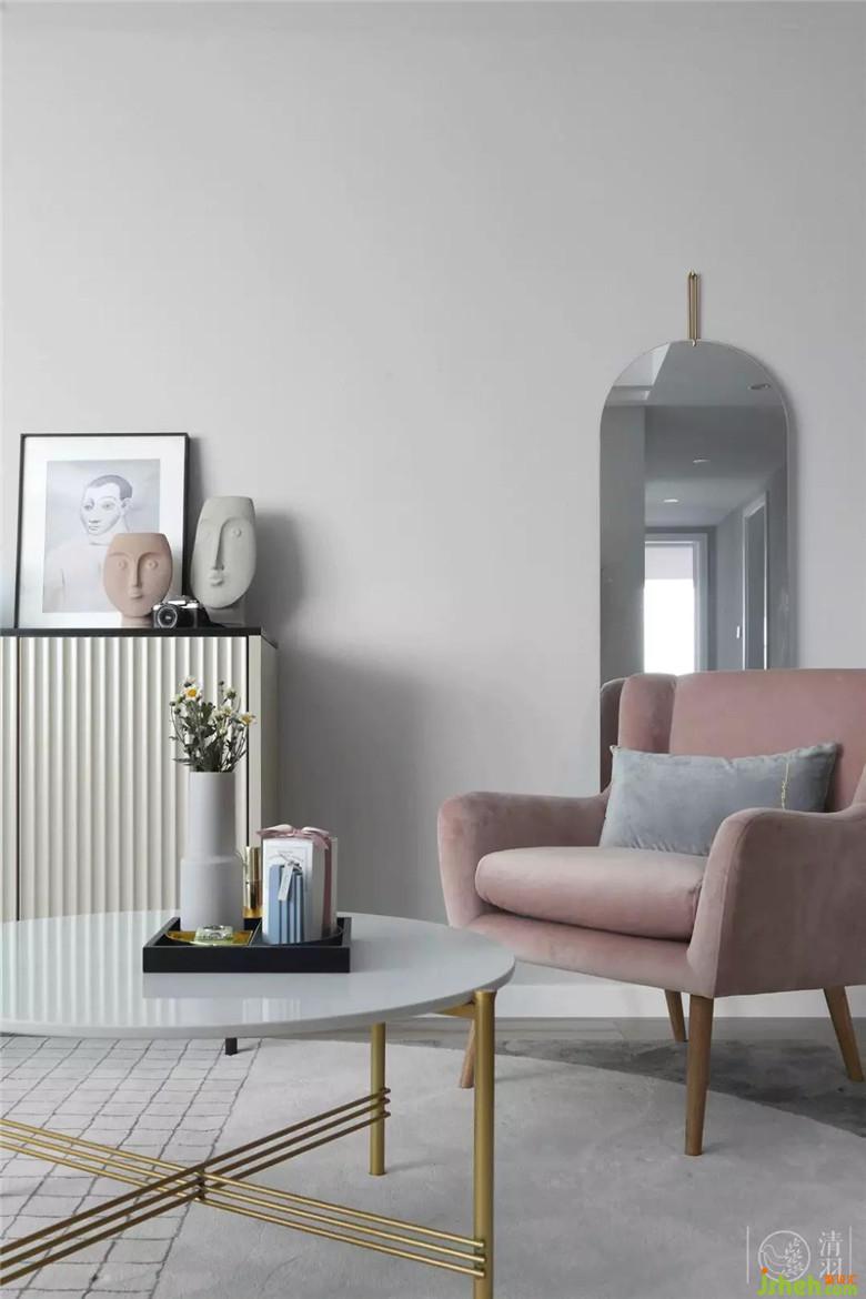 房子的整體采光都很好,我們也盡量的保留大部分的格局不變,讓自然光線可以撒滿整個(gè)屋子。因?yàn)閺N房的格局與采光較弱,所以改動(dòng)較大,廚房改為開放式的布局,增加吧臺(tái)與收納的空間。生活陽臺(tái)則從衛(wèi)生間通過,這樣廚房的空間也通透明亮起來。而在色彩上,我們也是采用大面積的灰度色彩,搭配低飽和度色調(diào)的的家具,讓整個(gè)房間通透而雅致,再用一些明亮顏色的配飾點(diǎn)綴其中,讓空間充滿趣味。