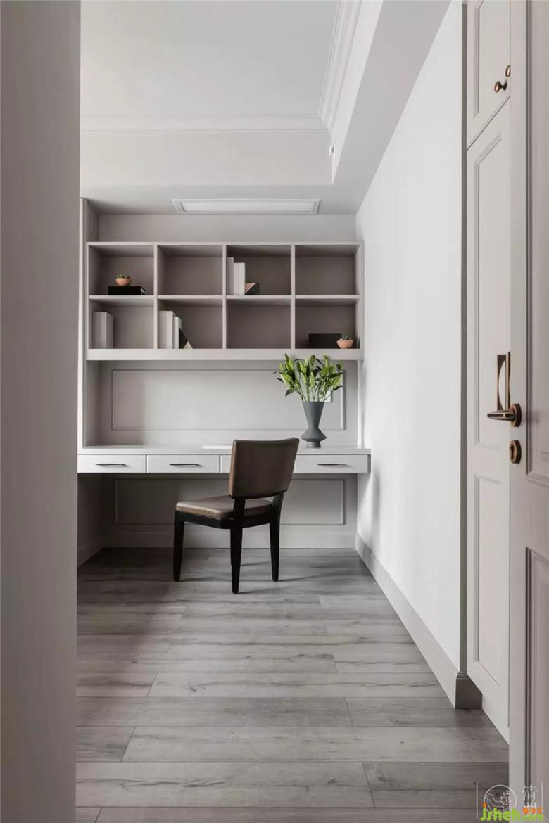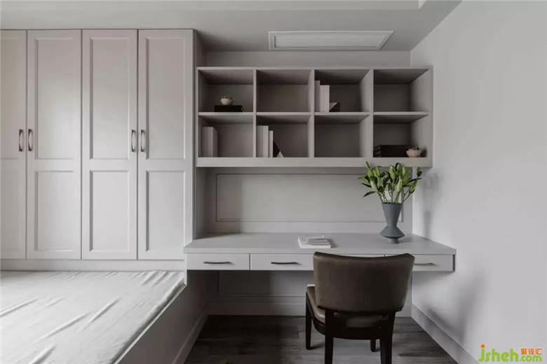 延續(xù)客廳餐廳的色彩,次臥的整個(gè)空間色彩也很統(tǒng)一,讓每一個(gè)小角落都透露出優(yōu)雅與知性的美。