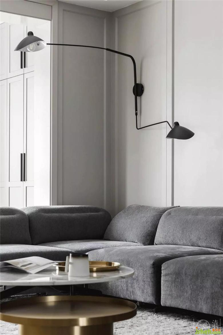 我們沒有給客廳設(shè)置主燈。而是在沙發(fā)一角的墻上,裝置了帶實(shí)用性的氛圍燈。以此來避免打破整個空間的平衡,也能盡可能不會影響投影幕布的使用。