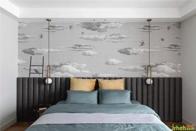 主臥室定制了整面墻的進(jìn)口墻紙。太陽穿上樸素的光之衣,云朵卻披上了絢麗的衣裳。