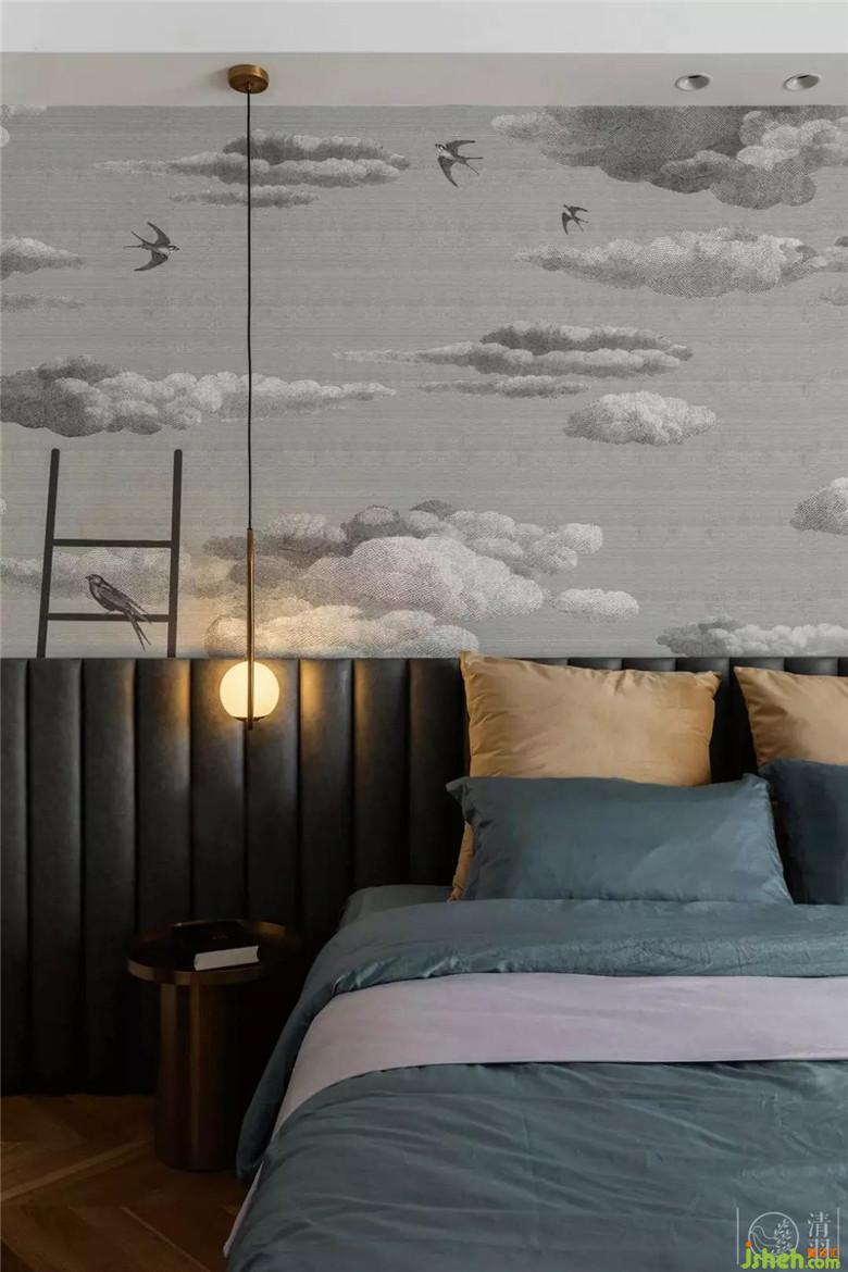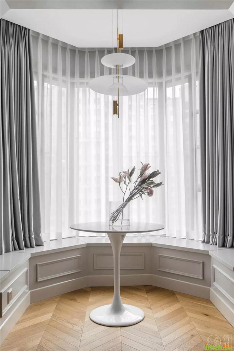 主臥有一個不大不小的陽臺,也剛好給了屋主一個可以放空的地方。白紗加銀灰色端面材質(zhì)的雙層窗簾,既能讓陽光均勻的鋪滿房間,也能關(guān)住一室的旖旎。