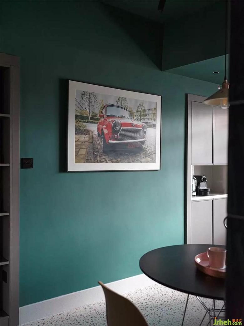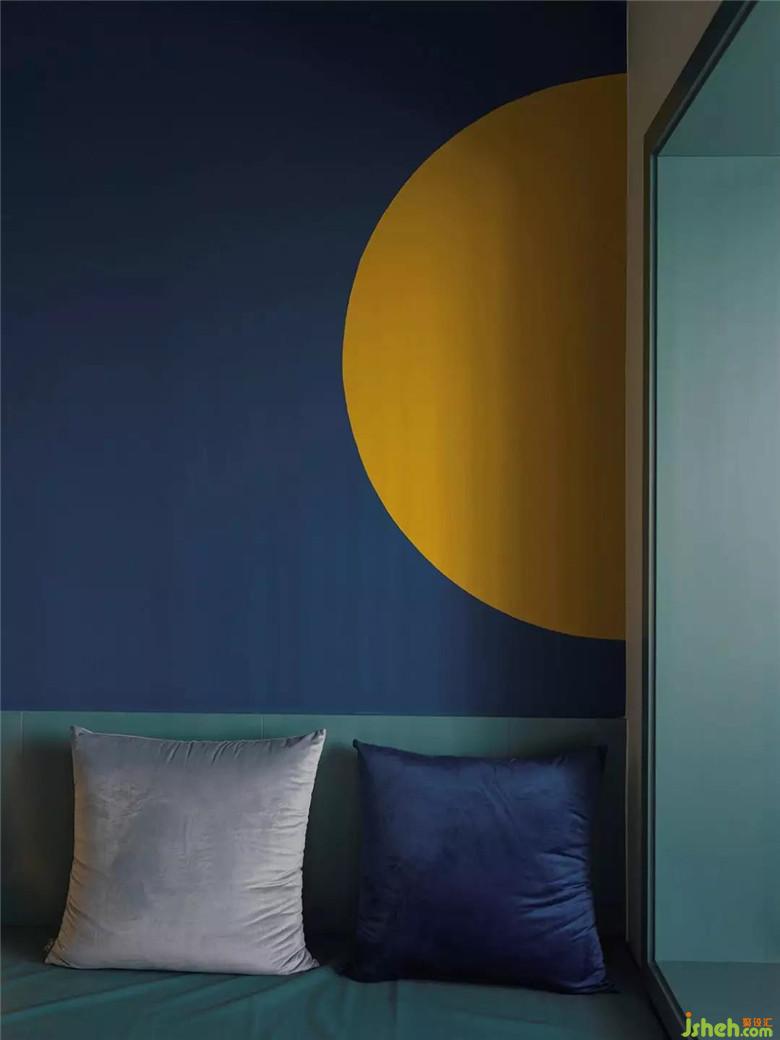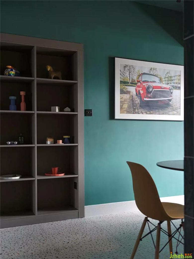 規(guī)劃好整個(gè)空間結(jié)構(gòu)以后,我們對(duì)墻面進(jìn)行了美化:在新建墻體時(shí),盡量預(yù)留窗洞,然后用玻璃和幾何圖案組合為隔斷;用灰彩色乳膠漆分色出幾何圖案豐富視覺;在顏色的分配上,我們采取了局部重色局部留白的方式,留白部分的墻面會(huì)作為投影儀幕布功能使用。