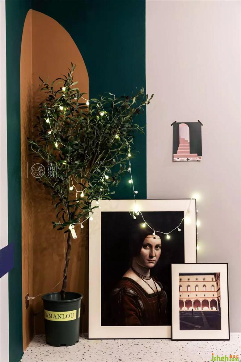 雪妹妹一家都是川劇藝術(shù)家,這一次我們沒(méi)有選擇延續(xù)之前他們家《安靜之?!返娘L(fēng)格,而是選擇了更契合她職業(yè)的一種氛圍——濃墨重彩。我們以川劇臉譜油彩為靈感,結(jié)合當(dāng)下流行色和幾何元素,加上類似舞臺(tái)燈光效果的照明方式,在這個(gè)老房子里打造出一個(gè)全新的舞臺(tái)。