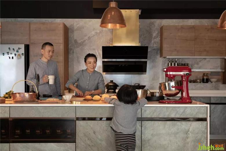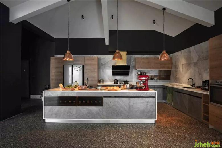 “大大的廚房,像水泥砌成的臺面,鋪著帶年輪的實木板,灶臺上放著彩色的玻璃碗、陶瓷鍋,亞光黑鋼和紅棕色銅制金屬原件點綴著黑色的墻面?!笔嵌嗌偃嗽谄饺绽飸械谜垓v的夢想廚房?而它,就在這里。盡管一體的多功能灶臺是淘來的展示樣品(為了把成本省下來花在更值得的地方,當(dāng)然它價格也不菲,使用感一流),盡管墻面由于施工方的局限,最后是由老板夫婦重新親自收尾,但用下的心都一一呈現(xiàn)。