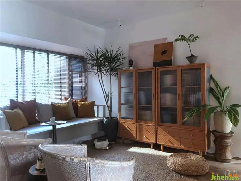 柜體與白色的墻面,頂面延伸出流動的功能動線,換好拖鞋的業(yè)主抬頭,入目便是有著斑駁光影的原木色柜子與綠植,恍然走入陽光明媚,葉影婆娑的清邁小巷,轉(zhuǎn)角既是一片廓落庭院。