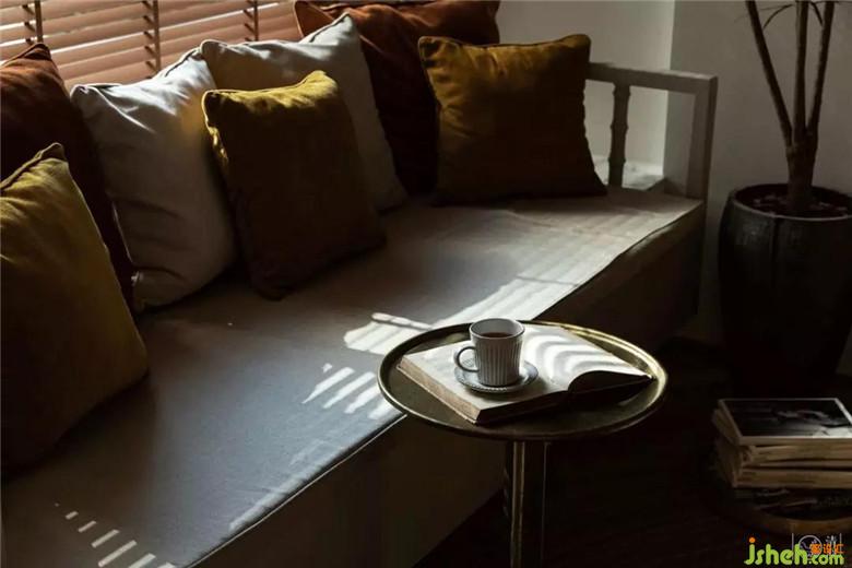 豎廳改橫廳!打破它3.3米的常規(guī)布局,拓寬客廳開(kāi)間至4.4米!以最大限度利用空間同時(shí)降低空間飽和程度為目的,飄窗干脆改“沙發(fā)”!電視墻太雞肋,摒棄!僅用木質(zhì)百葉窗代替厚重的布藝窗簾,在保障隱私的前提下,給自然光極大地尊重,并以此呼應(yīng)草編的地毯與蒲團(tuán)。茶幾,太阻礙情感交流,也去掉,給圖圖寶貝更大的活動(dòng)空間也能接納更多的親朋好友!