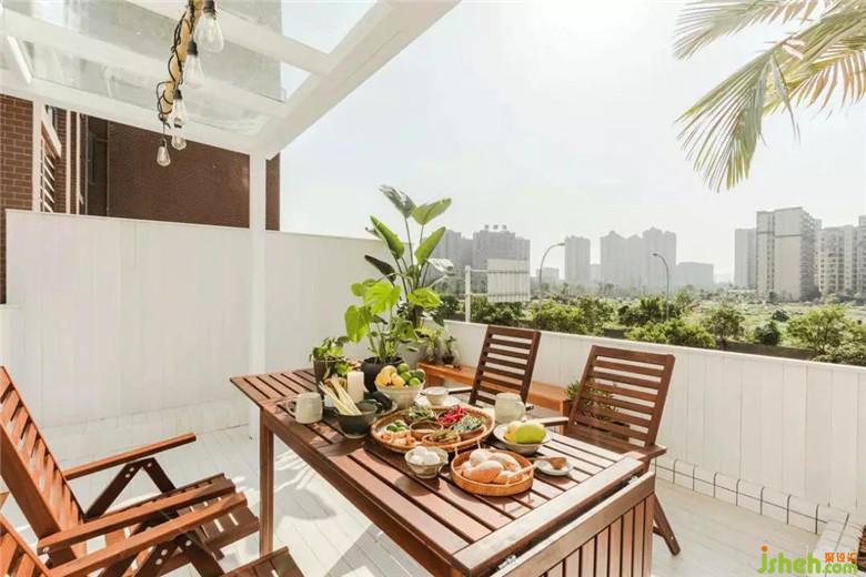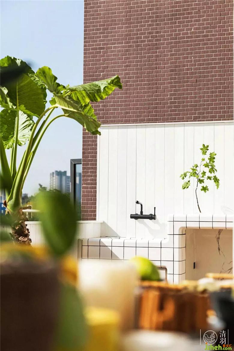 以上這組圖片如果不做說明,也許會有人覺得他們走錯片場。但它的確是這套緊湊套三里的超級彩蛋,一個讓人艷羨的超大陽臺。它原本的設(shè)計方案是整個打造為玻璃陽光房,由于物管刁難,經(jīng)歷了長達(dá)數(shù)月的交涉溝通,我們反復(fù)修改方案,最后在物管要求和設(shè)計效果之間尋求平衡點,最終打造出了熱帶島嶼度假酒店般的陽光露臺。
