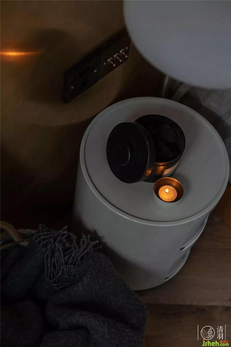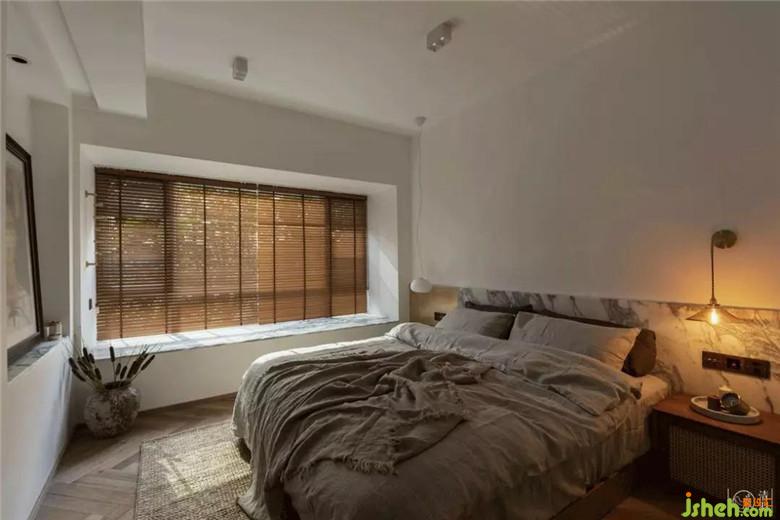 主臥墻面留白很多,精髓在于床頭的墻裙使用了定制的黃銅板與天然石材進行拼接。黃銅獨特的啞光金屬質(zhì)感,無論是對日光、月光還是燈光都能漫射出別致的光彩,那種不奪目卻能溫暖人心的光彩。