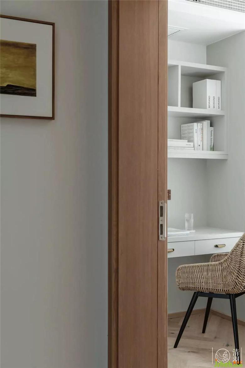 書房是現(xiàn)實(shí)版的“黃金屋”,白天推開門,這里能有最好的自然光閱讀位,夜晚打開燈來,就像記憶中圖書館的那一隅,光線柔和,時(shí)光靜好。