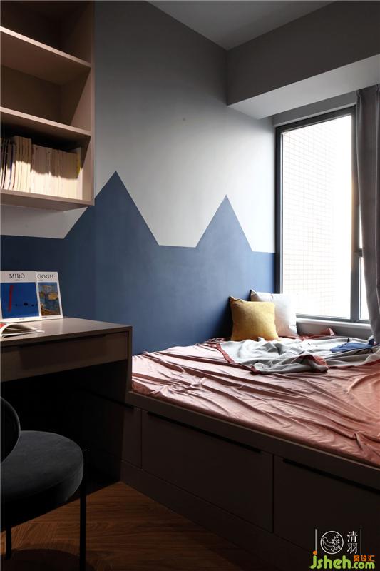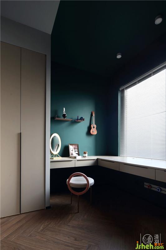 從客廳走向書房,主人公喜歡安靜,所以我們采用木質(zhì)家具的淺棕色、米白色和墻面局部的墨綠色相互搭配融合,簡簡單單的幾個色調(diào),加上家具的一字型和L字型,再節(jié)約空間的基礎上增加儲存容量,也將把整個空間的狹小、方寸之感拉伸,增加空間功能性。