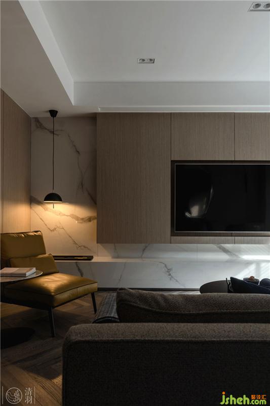 “生長”作為本次空間設計的源發(fā)點,客廳空間我們用了大面積的木飾面,木百葉,搭配巖板,在保證足夠自然溫暖氣息的同時也讓空間有高級的干凈感。室內設計師