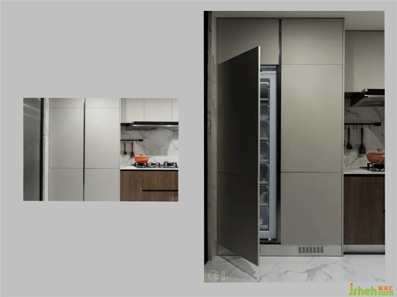 依然堅持“我們做好最基礎的功能構(gòu)建,其余的就交給優(yōu)秀的主婦吧”這樣的原則。足夠豐滿的儲物空間,足夠?qū)挸ǖ牟僮骺臻g與臺面,嵌入式冰箱,把更多的空間留給女主人薩薩去創(chuàng)造更多美味的食物。