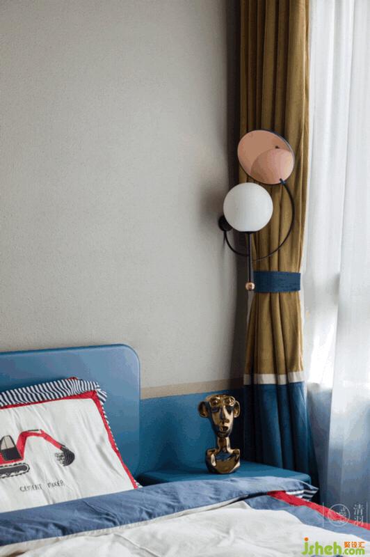 兒子房,以灰色搭配藍(lán)色為主色調(diào),可以滿(mǎn)足各個(gè)年齡段男孩子的審美偏好??紤]到目前還是兒童房,Masion Dada充滿(mǎn)童真情懷設(shè)計(jì)的壁燈正好可以用來(lái)調(diào)和這個(gè)配色的“沉著冷靜”。