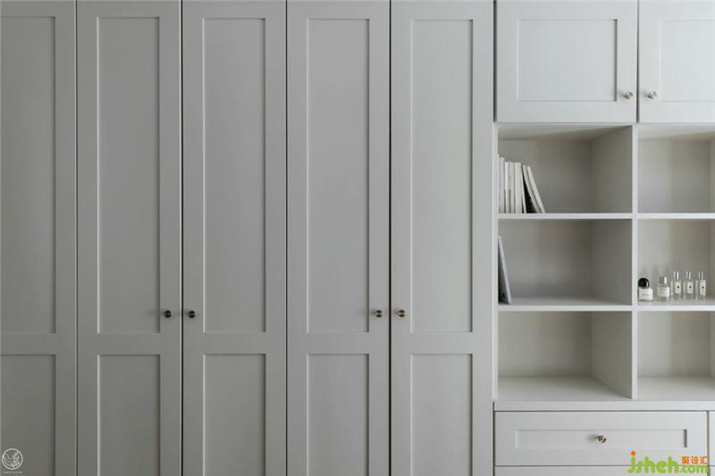 床對面的墻面體被用來做了極致的收納空間,有虛有實,有開有合。室內(nèi)設計師