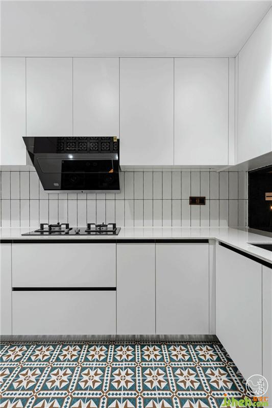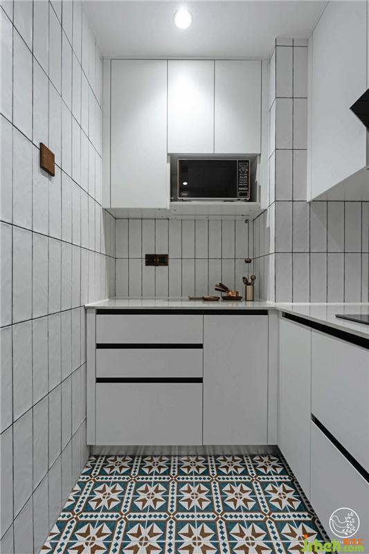 依然是狹小空間色彩簡單的原則,但在地面上加了點(diǎn)異域復(fù)古風(fēng)的小心思,呼應(yīng)外部空間相對熱情的色彩基調(diào)。室內(nèi)設(shè)計(jì)師