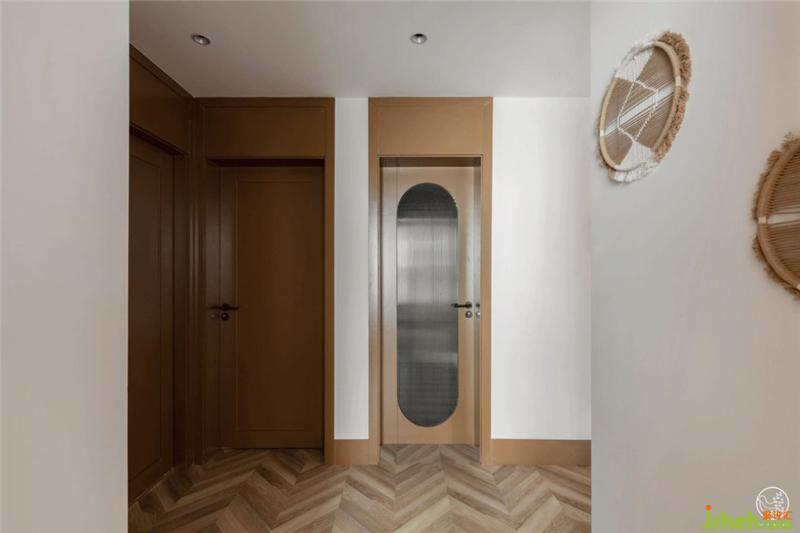 過廳也并非簡單的通道,為了滿足未來5到10年的需求,我們在此也安排了充足的儲物空間??蛷d的風(fēng)管機(jī)設(shè)備也隱藏在頂部吊頂內(nèi)。室內(nèi)設(shè)計(jì)師