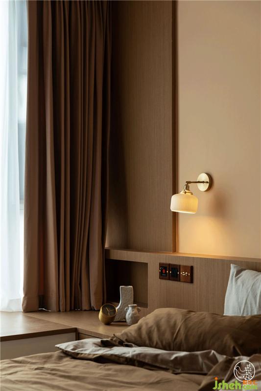 夫妻倆的臥室我們將色彩飽和度降低,以奶油棕為基調(diào),創(chuàng)造出溫暖沉靜的氛圍。室內(nèi)設(shè)計(jì)師