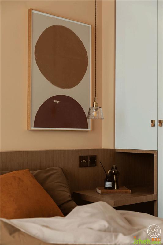 現(xiàn)場(chǎng)制作的一體化床頭,通過(guò)左右與飄窗臺(tái)、衣柜的完美銜接與融合,達(dá)到更為有效的空間利用,結(jié)合墻面的裝飾,空間層次感也更為清晰。室內(nèi)設(shè)計(jì)師