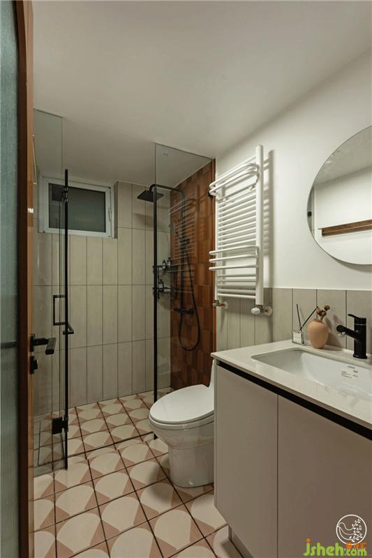 淋浴間的地面做了下沉處理,相較于傳統(tǒng)的地漏更兼顧美觀與人性化需求。室內(nèi)設計師