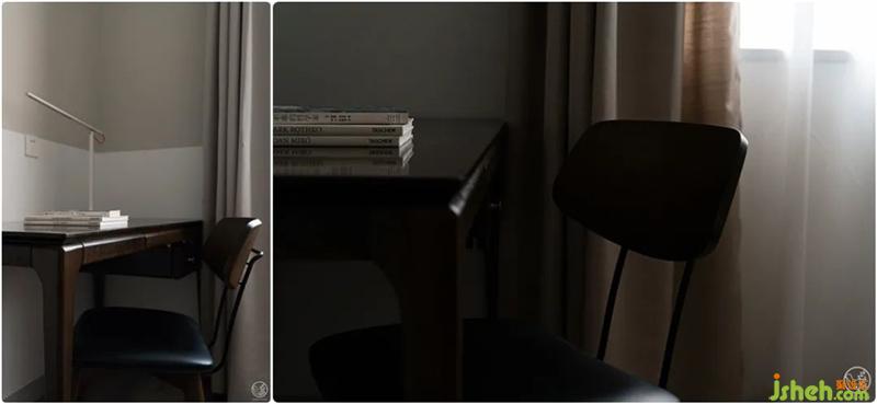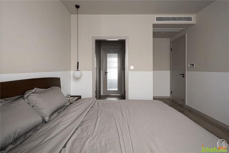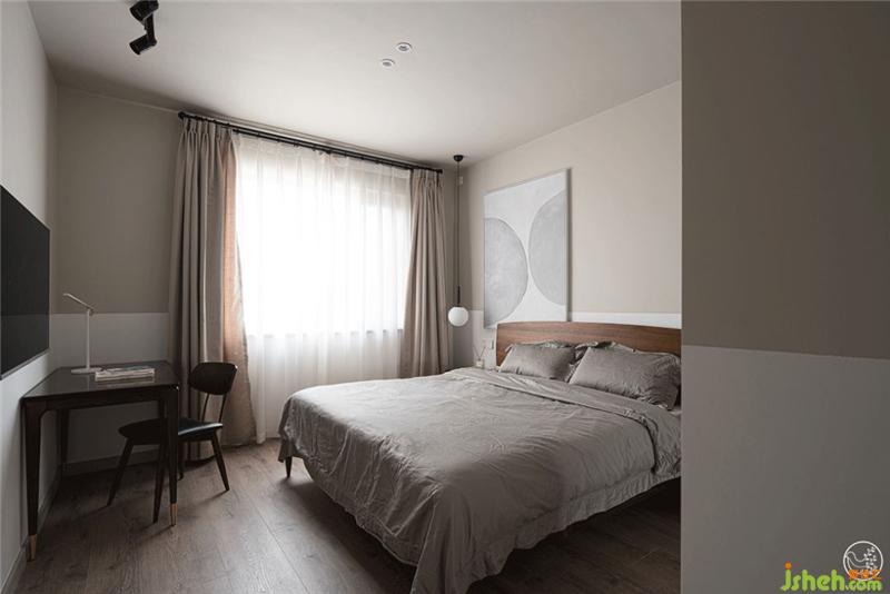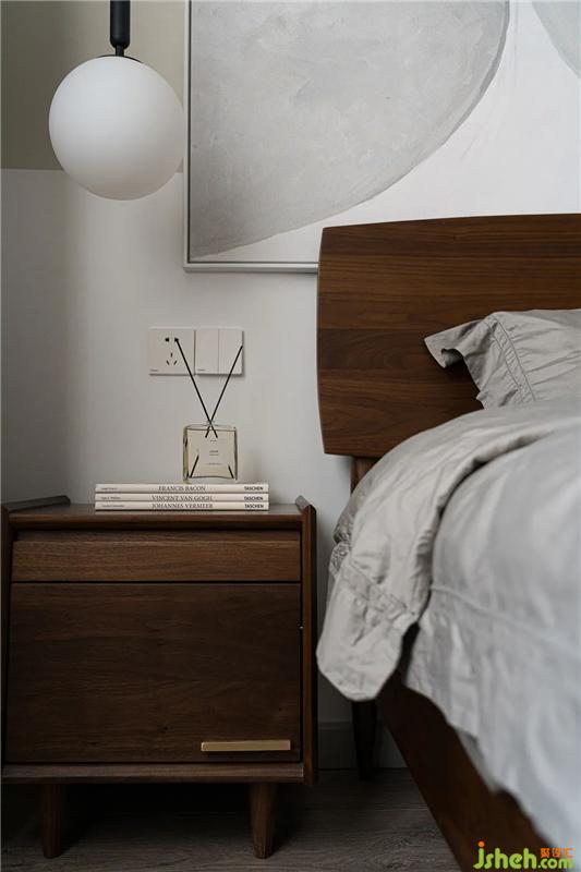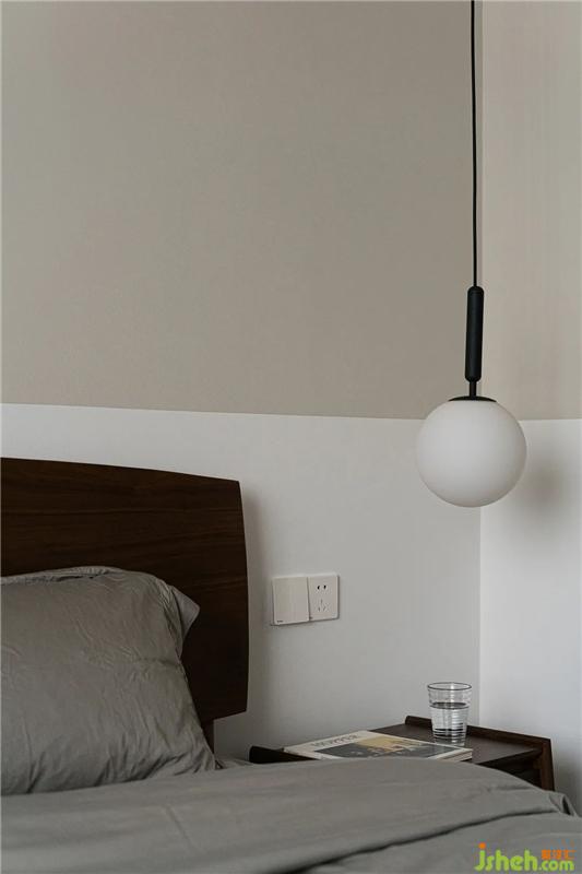 簡(jiǎn)約的臥室里,沒有多余的家具,我們僅將一床、一桌、一燈、一椅、一柜簡(jiǎn)單融入淺灰色與白色拼色的墻面和溫暖的棕色地板氛圍之中,通過灰色、棕色和白色之間的碰撞,一本雜志,一杯咖啡,營(yíng)造出溫暖而又含蓄,理性而又溫情的休息氛圍。