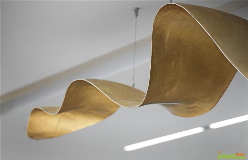 在空間布局中,功能分區(qū)與動(dòng)線設(shè)計(jì)貼合辦公需求,力求兼具美觀性與實(shí)用性。辦公室設(shè)計(jì)行云流水的動(dòng)線取代建筑原本的方正格局,展現(xiàn)出朗聯(lián)對(duì)場(chǎng)景營(yíng)造的“持之以新”。與此同時(shí),接待臺(tái)上空的藝術(shù)裝置,以連綿起伏的形態(tài),與蜿蜒的動(dòng)線設(shè)置構(gòu)成呼應(yīng)