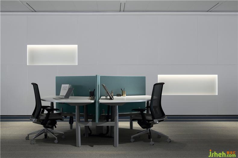 協(xié)作辦公區(qū)被定義為“智慧型的辦公舞臺”。以隔板為界的兩套辦公桌椅,促進(jìn)了員工之間的協(xié)作和互動。值得一提的是,這里選用了可升降的辦公桌,讓員工有權(quán)選擇適合自己的辦公方式