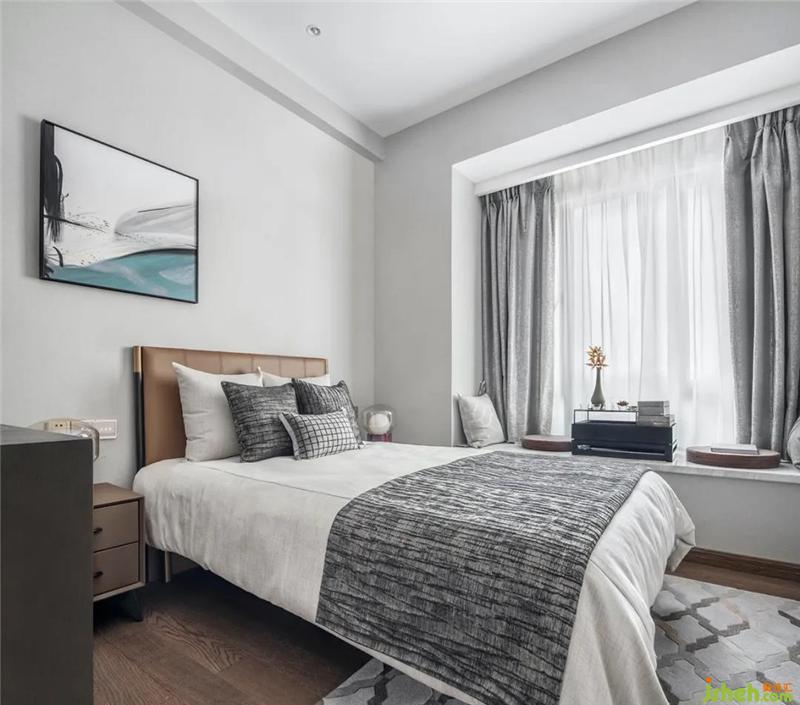 次臥也是壹如既往的舒適簡潔,亞麻色的軟裝搭配讓臥室氛圍更加樸質(zhì),樣板房設(shè)計使整個環(huán)境更加精致出彩。